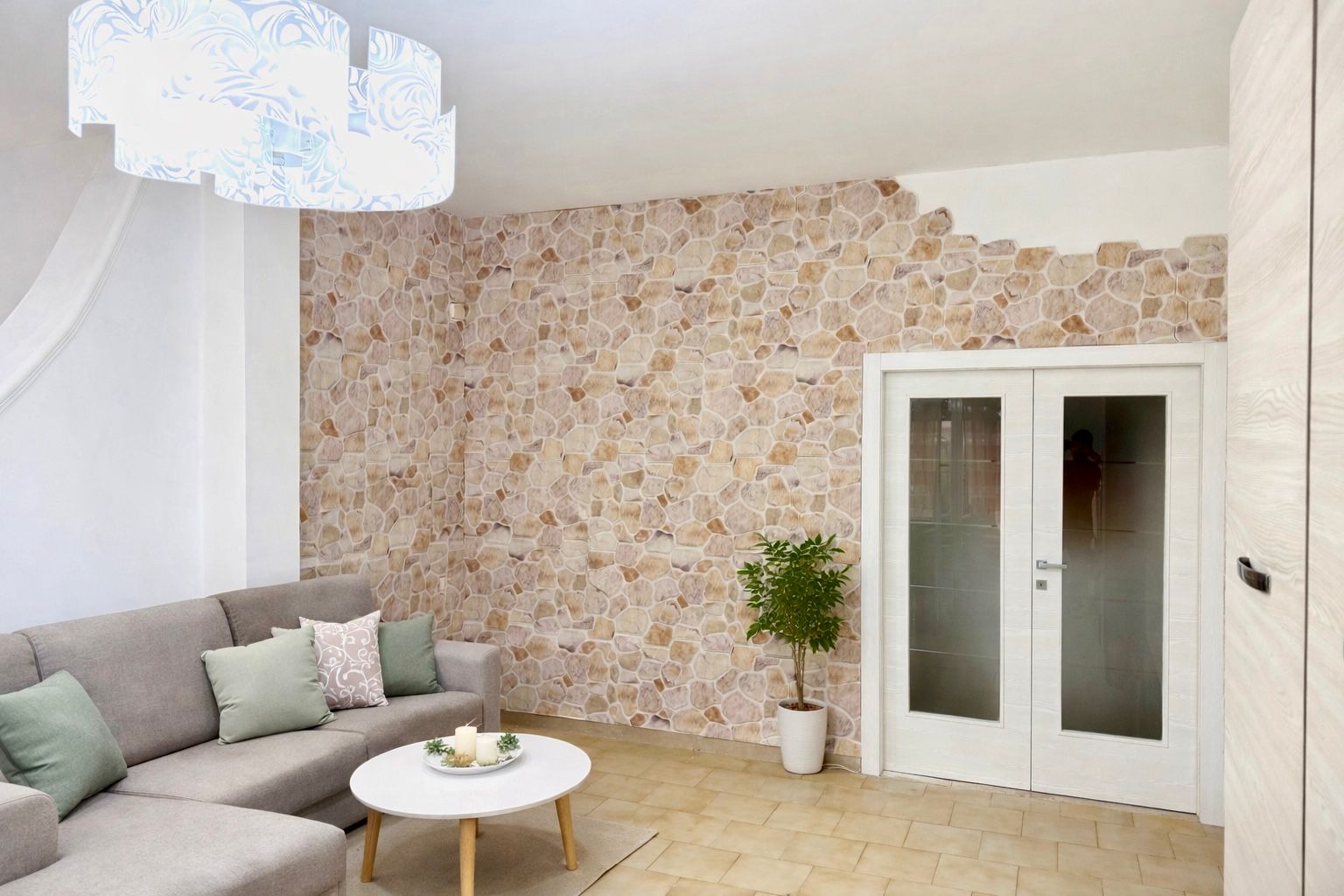 Panneau décoratif en polystyrène couvert avec résine Albanese, effet pierre classique, dimension 110 cm X 56 cm, épaisseur maximale 2 cm.